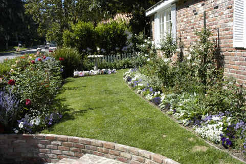 Houses are most often larger that a cottage and often not in a style suitable for the traditional cottage garden.