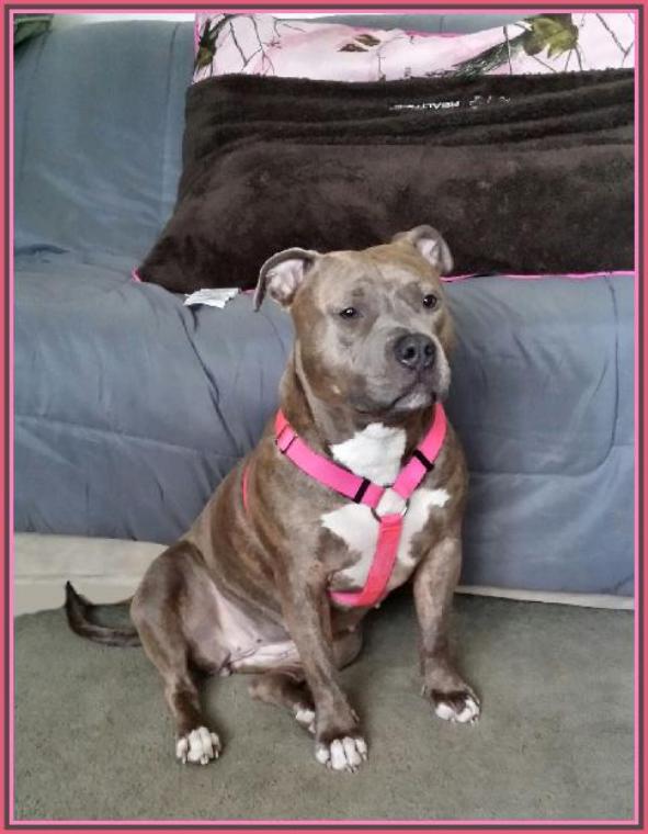 | Miss Bella Bear came to live with us on July 1st, 2017. We rescued her from a bad situation She was covered with a fungal disease, her skin was bloody, and had lost 70% of her fur. She was about 3-4 years old and did not know one word, and had absolutely no training of any kind. She was like a baby. Fast forward 1-1/2 years and she is doing so very well now and feels totally at Home. We LOVE her! |