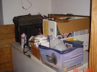 | We cleaned out the closet downstairs where the fridge is and are using this for hazardous stuff until we can find out what we need to do to disposed of it. |