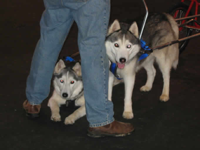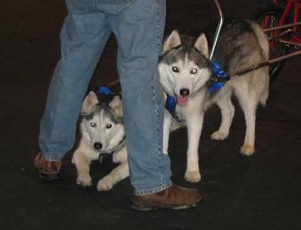 | Then you have already heard how marvelous they are. We think you should also be told that they do have their shortcomings and may not make the ideal pet for everyone who is attracted to them. Siberians are a gregarious lot and need the company of other dogs or of people at all times. If you work all day, or have room for only one dog ..... Don't buy a Siberian. While capable of strong affection for his family, the Siberian Husky is also very friendly with strangers. So, if you want the fierce loyalty of a one-person dog ..... Don't buy a Siberian. The Siberian Husky is not a watch dog, although those ignorant of his true nature may be frightened by his appearance. If you want a dog with aggressive guard-dog instincts ..... Don't buy a Siberian. |