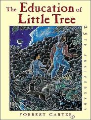 | The Education of Little Tree By Forrest Carter tells of a boy orphaned very young, who is adopted by his Cherokee grandmother and half-Cherokee grandfather in the Appalachian mountains of Tennessee during the Great Depression. "Little Tree" as his grandparents call him is shown how to hunt and survive in the mountains, to respect nature in the Cherokee Way, taking only what is needed, leaving the rest for nature to run its course. Little Tree also learns the often callous ways of white businessmen and tax collectors, and how Granpa, in hilarious vignettes, scares them away from his illegal attempts to enter the cash economy. Granma teaches Little Tree the joys of reading and education. But when Little Tree is taken away by whites for schooling, we learn of the cruelty meted out to Indian children in an attempt to assimilate them and of Little Tree's perception of the Anglo world and how it differs from the Cherokee Way. A classic of its era, and an enduring book for all ages, |