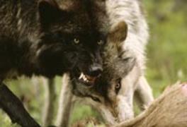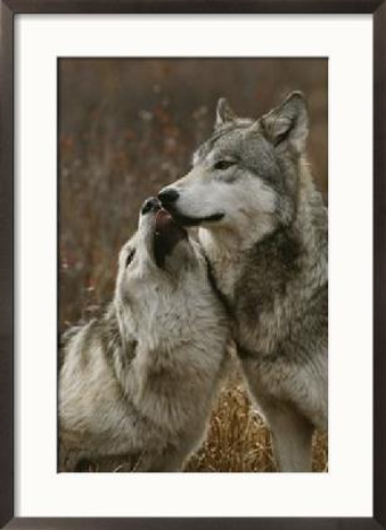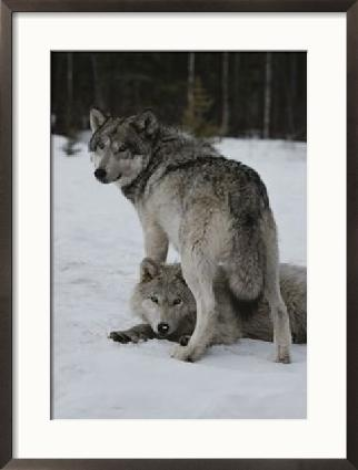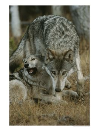| Gray Wolf with a Menacing Expression Stands over Another by Jim And Jamie Dutcher |
