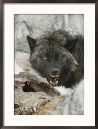 | Gray Wolf Growls a Warning as It Feasts on a Deer by Jim And Jamie Dutcher |