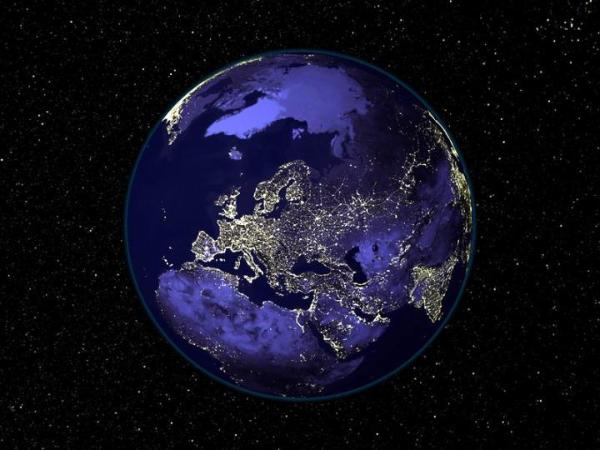 Night arrives over Europe